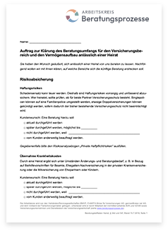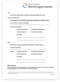 Die Beratungsmaterialien zum Thema Versicherungen und Finanzen, die Sie hier kostenlos downloaden können, sind die Essenz unserer Erfahrung. Unser Team weiß, was funktioniert. Makler, Vertriebsjuristen, Dienstleister, IT-Spezialisten und Kommunikationsexperten haben Formulare, Checklisten, Verträge, Vorlagen und vieles mehr gesammelt und für Sie aufbereitet.