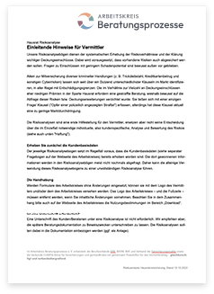 "...eine qualifizierte Beratung Standards und eine vollständige Risikoanalyse erfordert. Hier leistet der Arbeitskreis Basisarbeit zur Verbesserung der Beratungsqualität. "